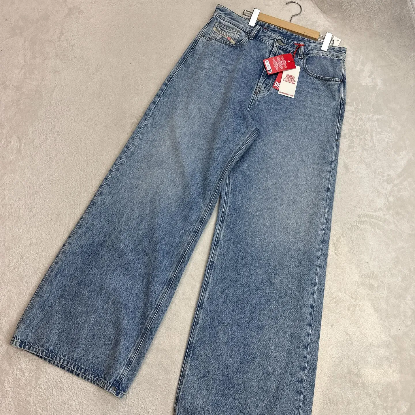 DIESELディーゼルの DIESELディーゼルの2025ssモデルの新品タグ付きLサイズ相当デニム入荷しました🫡DIESELのデニム高いですよね。たまにららぽーととかのディーゼルに入りますがデニム7万とかで😅とても手が出ません。が、今…